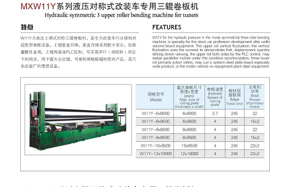 MXW11Y系列液压对称式改装车专用三辊卷板机